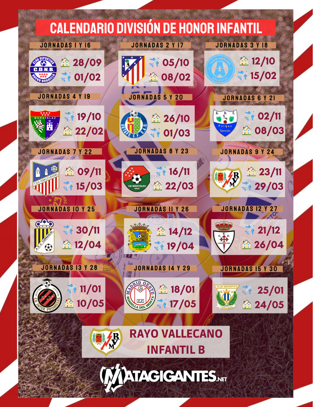 Os dejamos el calendario liguero completo del Rayo Infantil B en el grupo 2 de División de Honor Infantil.