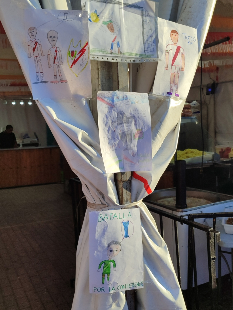 Como antesala de la entrega de placas, disfrutamos del talento, el arte y, sobre todo, del rayismo más joven. Héctor, Mario, David, Tiago y Bruno se encargaron de recordarnos lo necesario que es disfrutar del logro tan importante como fue entrar en Europa. Y lo hicieron a través de sus dibujos en el concurso infantil de pintura «Pinceles Rayistas». Con la Conference League como eje central de su inspiración, nuestros pequeños artistas nos contaban su admiración por Batalla, Isi, Camello, Óscar Valentín, Trejo y un largo etcétera. Que Tiago, con sus apenas 9 años, en su dibujo tenga un recuerdo a modo de banderas para los rayistas que ya no están con nosotros, eriza la piel y dice mucho de lo bien que lo estáis haciendo, Edu. Obviamente, no podía haber un solo ganador y los cinco se llevaron sus obsequios como ganadores de este año. El benjamín del grupo, Héctor, se atrevió incluso a arrancarse con el cántico de «Ale Rayito, ale campeón».
